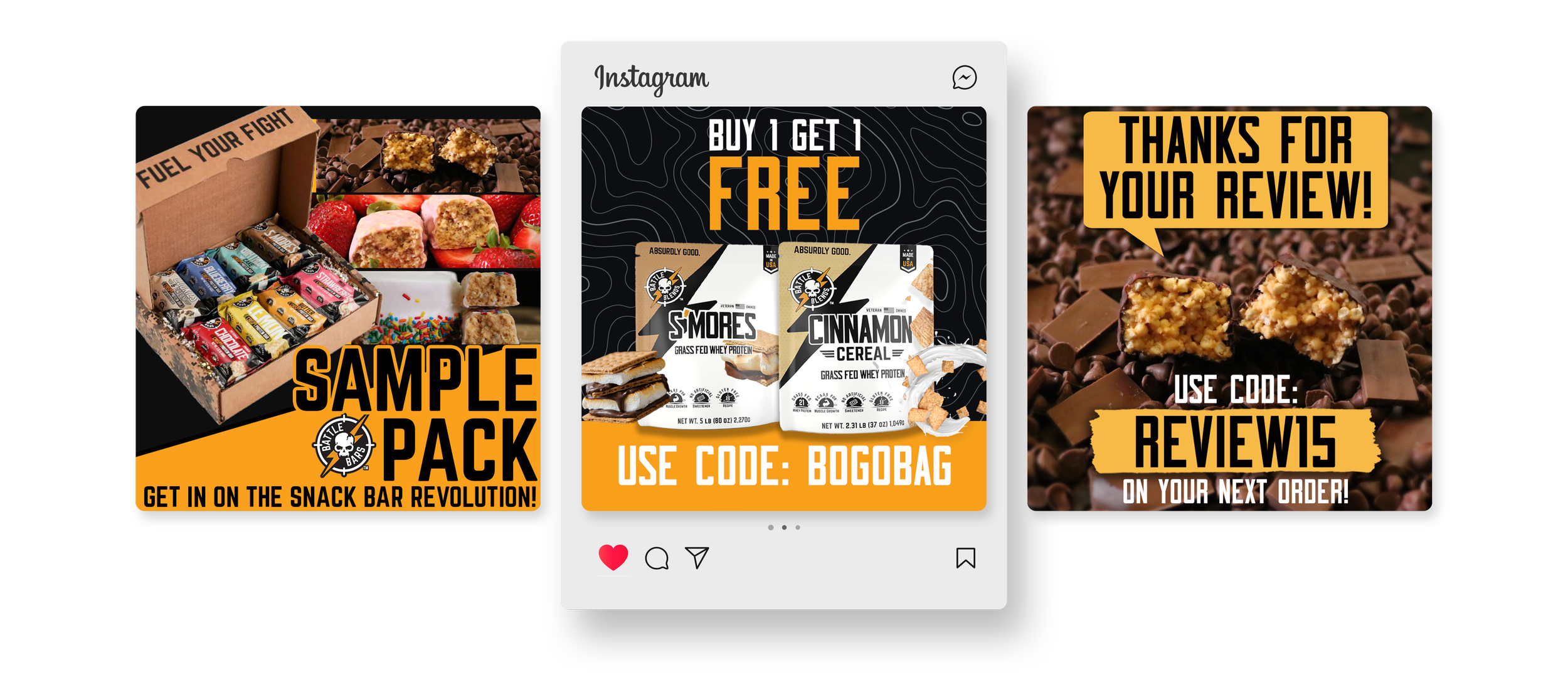 Advertising for Battle Bars was developed to capture attention quickly and communicate the brand’s energy across multiple channels. The work spanned social media ads, billboards, print placements, and animated video, designed to perform consistently across both digital and physical spaces.