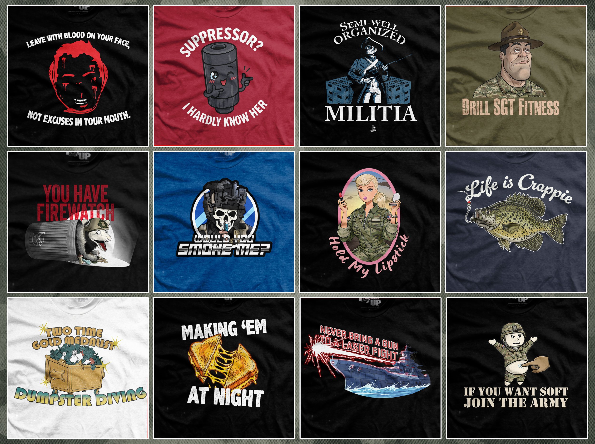 I collaborated with Ranger Up to produce dynamic visual content that reflected the company’s rugged, patriotic voice. My contributions included social media ad campaigns, custom website imagery, and original illustrated artwork developed specifically for apparel and t-shirt designs. The goal was to create graphics that were bold, memorable, and true to the brand’s identity.